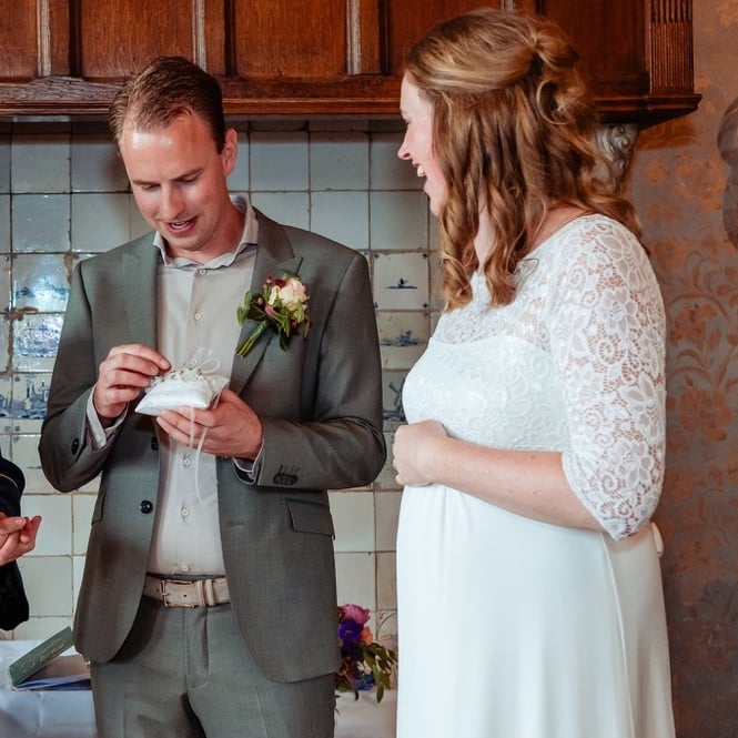 'Tijdens het kennismakingsgesprek voelden we ons al snel op ons gemak bij Daphne. Het werd een gezellig gesprek waarbij Daphne ook nog goede suggesties gaf voor onze ceremonie.