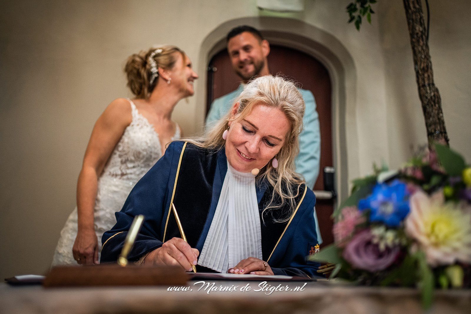 “Dank je wel voor de persoonlijke ceremonie, we doen het zo nog een keer en zouden jou dan weer kiezen. Zo goed was je passend, een mooie start van onze borrelbruiloft. Bedankt!”